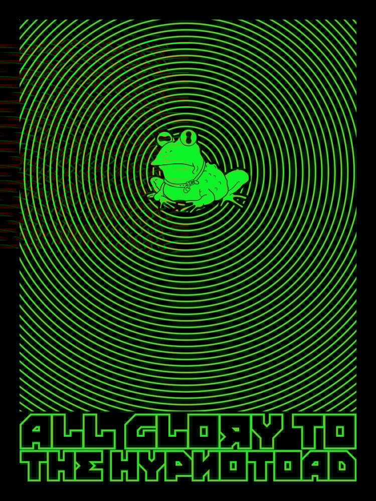 4-color hand-pulled screen print with fluorescent inks glows one way under a black light while a separate GID layer reveals a different image in the dark. The set of three photos is the actual poster in regular light/black light/glow in the dark.
